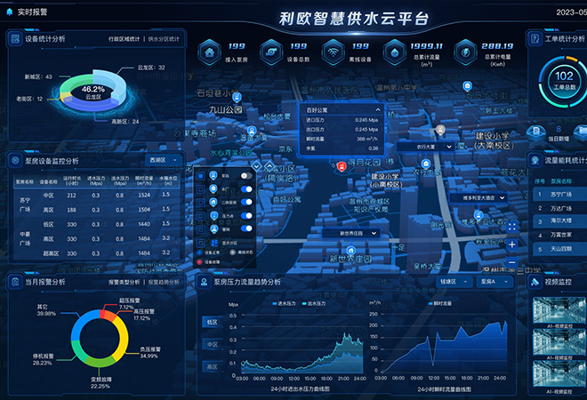 綜合設備運行狀態、實時數據、門禁開關、圖像監控,紅外監測與高清視頻聯動,來人自動抓拍,遠程報警,保障水質安全、設備安全以及泵房環境安全;