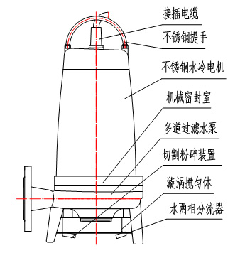 水泵可配螺旋型雜物切割系統,割刀與切割盆可進行粗、細兩刀工序切割,切割效果好,且零件更換極其方便,停機時間更少。
