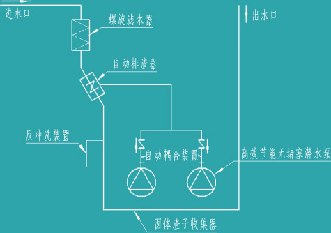利用污水旋轉下落產生的離心力,來分離污水和雜物。利用污水與比重不同的特性技術實現固液分離,污水從濾水器到集水箱內,雜物直接進入到儲渣管中。提高了污水提升能力,而且防止了水泵堵塞。